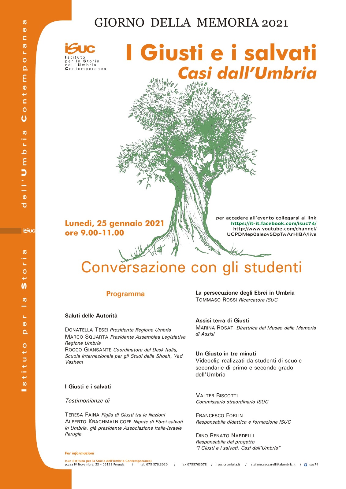 In occasione del Giorno della Memoria 2021 noi alunni della classe 3B abbiamo partecipato ad un’iniziativa dal titolo “I Giusti e i salvati. Casi dall’Umbria”, lanciata dall’Istituto per la storia dell’Umbria contemporanea (ISUC) e che ha coinvolto molte scuole dell’Umbria.